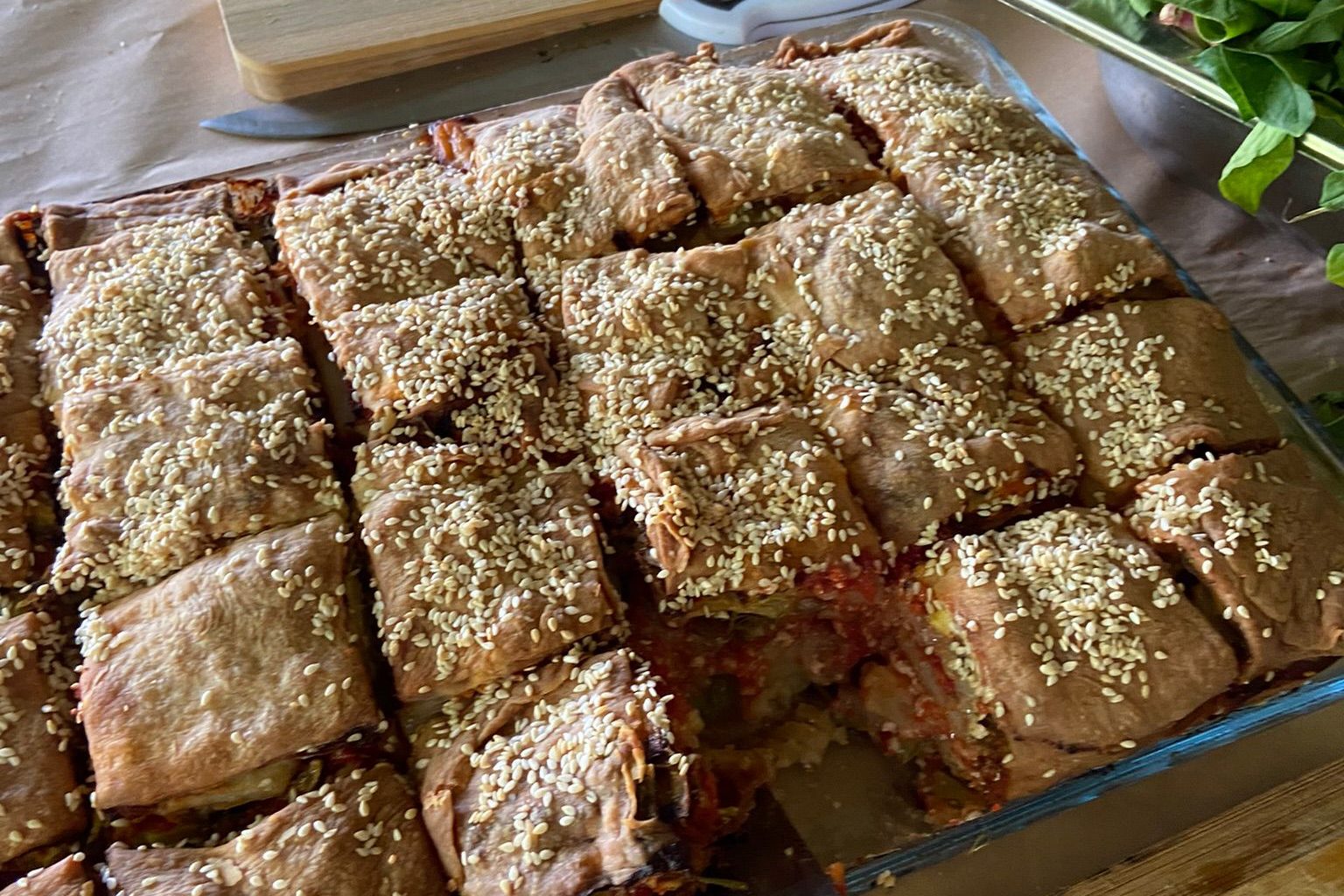 - Bu tarifin en en en önemli noktası böreği pişirmeden önce kesmek! Ondan sonra üstüne 1 adet yumurta sarısı ve gönlünden ne kadar susam geçiyorsa o kadar susamla süslemek 🙂